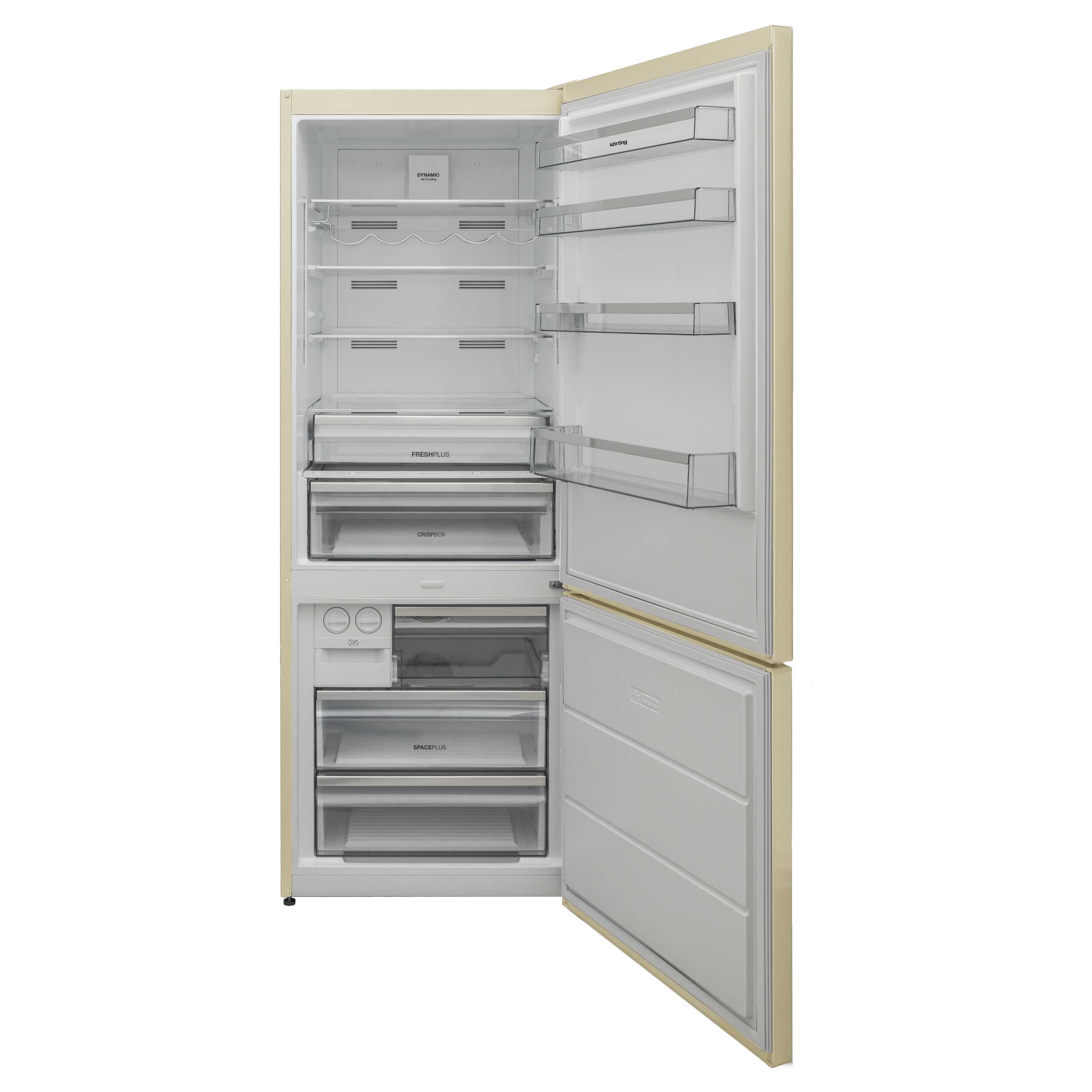 Специальный вентилятор в холодильной камере обеспечивает перемешивание воздуха и соответственно равномерное распределение температуры. Также динамическая система способствует уменьшению, смешиванию запахов в холодильнике и быстрому охлаждению большого количества продуктов.