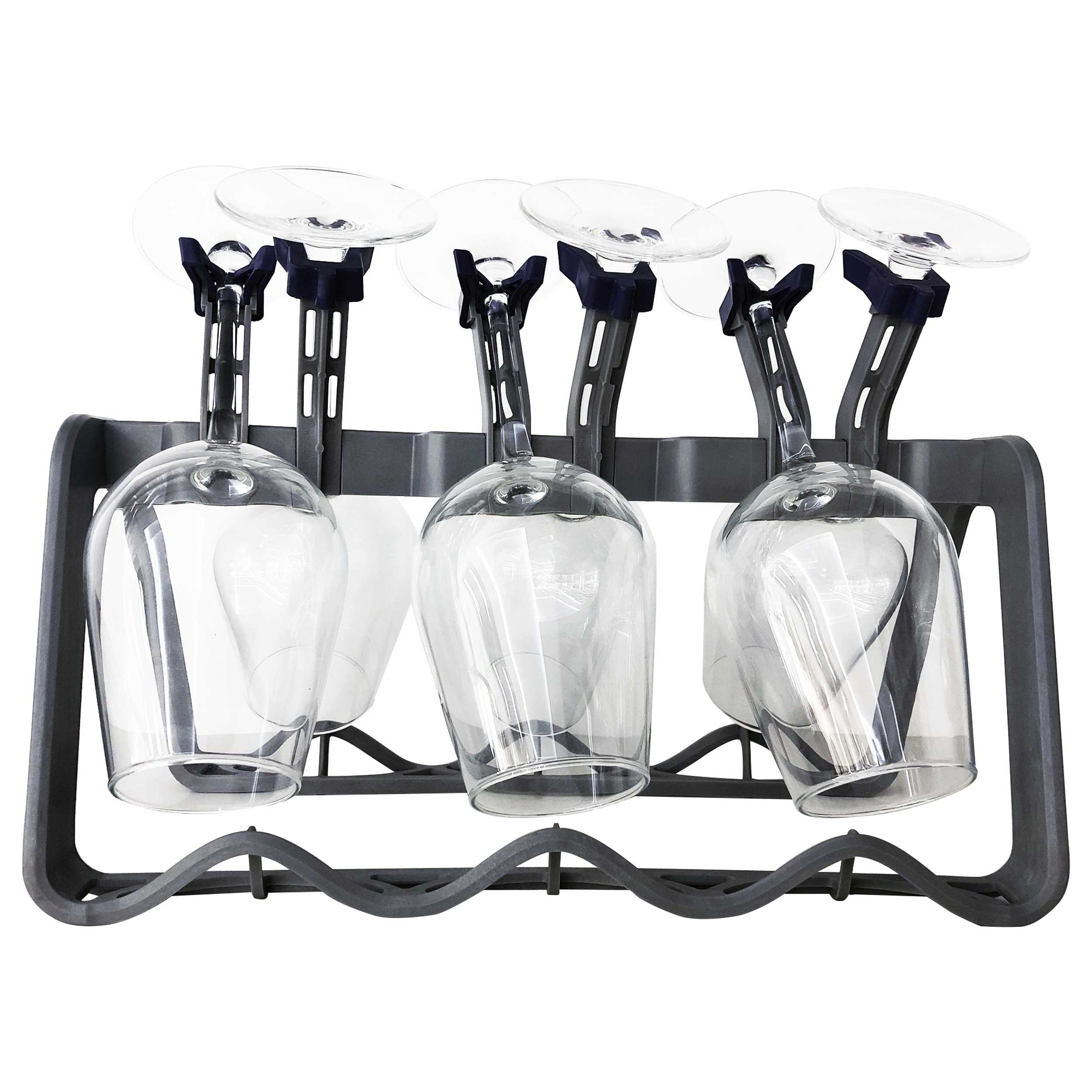Аксессуар, который входит в комплект, предназначен для безопасного промывания бокалов в количестве до 6 штук. Каждый бокал устанавливается за ножку на прорезиненный фиксатор, который предотвращает соприкосновение с другими бокалами.