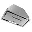 Сочетание стекла, стали и прямых, горизонтальных линий, используемых в кухонных вытяжках современного дизайна, объединяет внешний вид кухонной мебели и бытовой техники, создавая полноценное решение в стиле хай-тек.